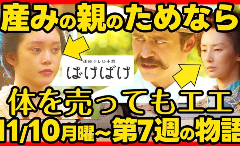 面白い~。土下座しながらも砂利をつかみ悔しさを滲ませるタエ。再起の意地が残っているタエ。母国に妻を置いてきたヘブン。ヘブンは妻を愛している。知っているのは旅館の女将と女中だけ。メイドを求めるヘブン。欧米で夜の相手するメイドは考えられない。100年以上前から違法行為。メイド募集の給金が高給で勘違いする日本の人たち。家族やタエのために決断するトキ。予告でヘブン邸に乗り込む祖父と父。三之丞は没落しても安堵した表情に見える・・タエの頼りは息子の三之丞だけ。
